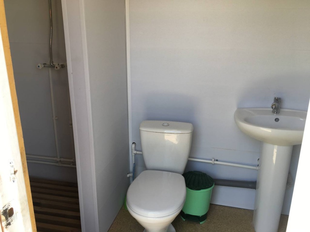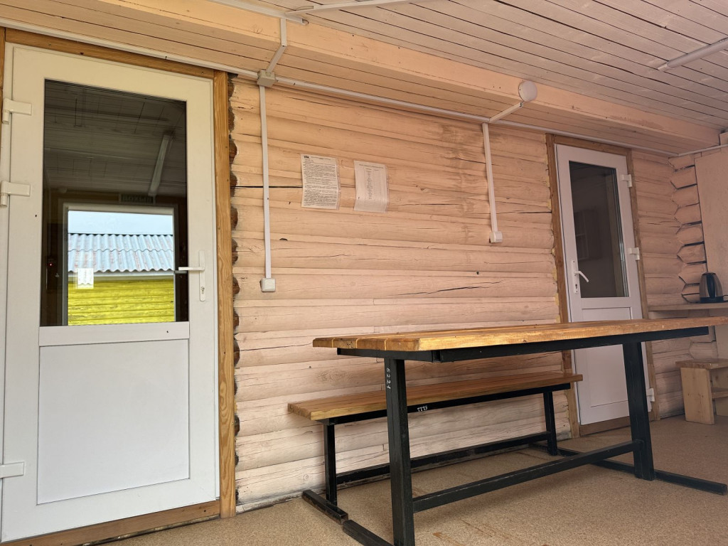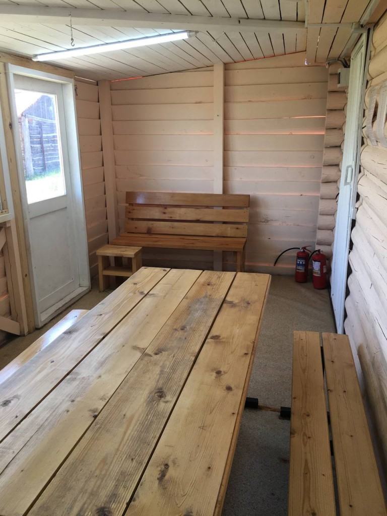 В домике - электричество, холодильник, чайник, собственный туалет и горячий душ. Рядом установлен мангал.