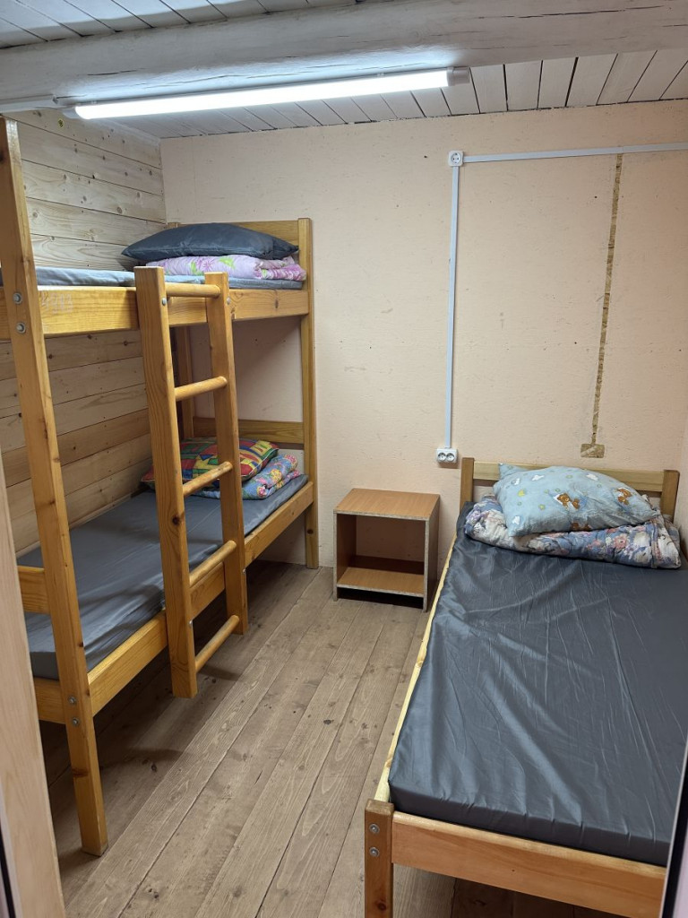 Спальная комната площадью 13 кв.м.: 2 двухъярусные и 2 односпальные кровати. Собственная кухня-веранда площадью 13 кв.м.