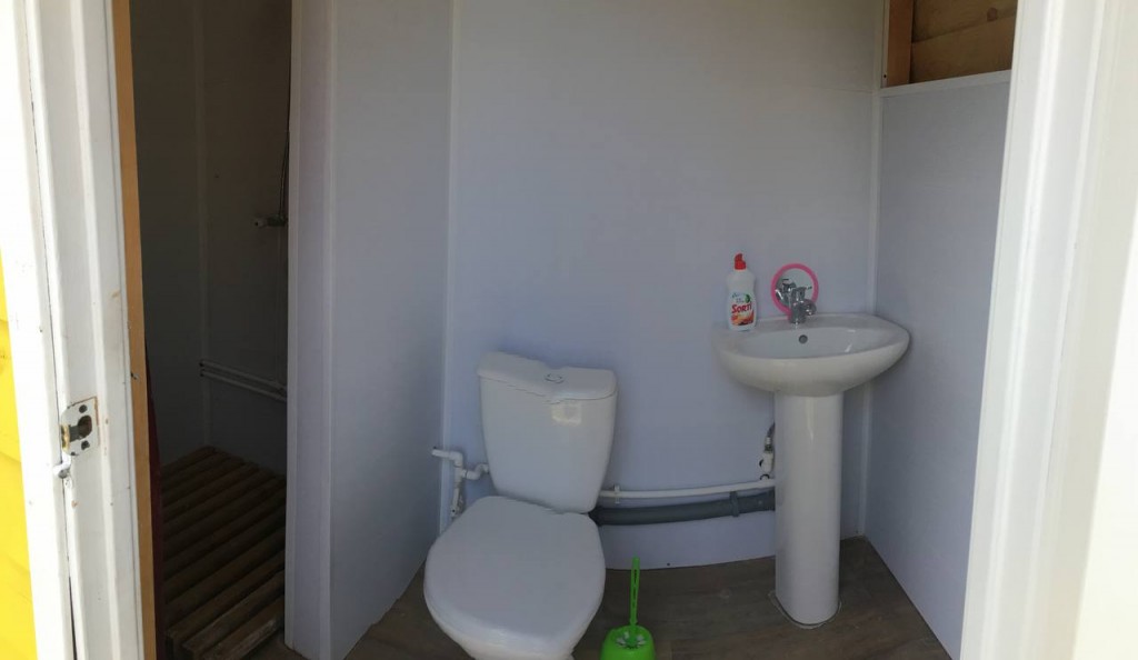В домике - электричество, холодильник, чайник, собственный туалет и горячий душ. Рядом установлен мангал.