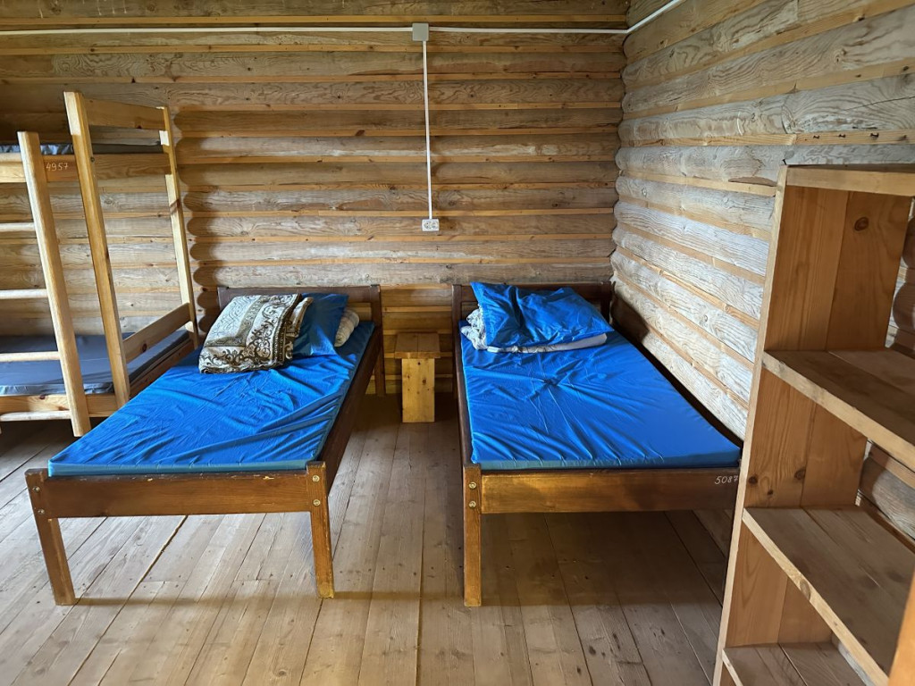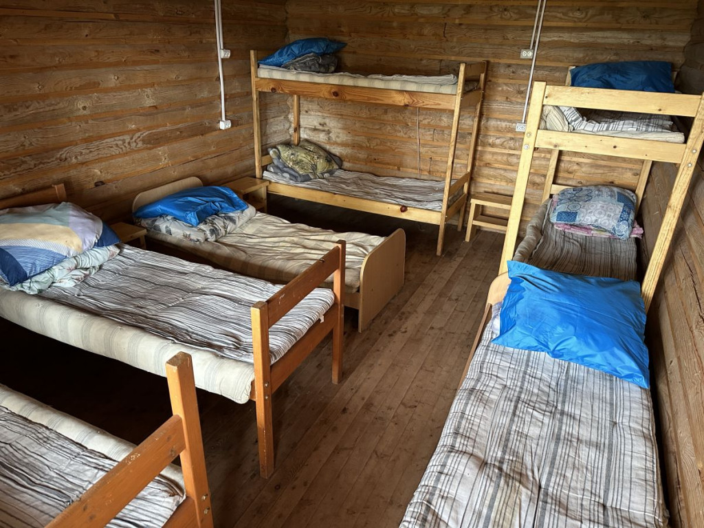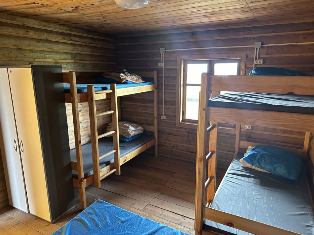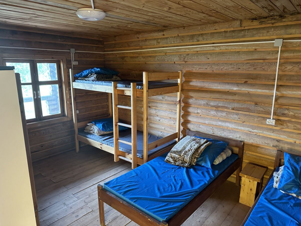 В 1 комнате на первом этаже 6 спальных места: 2 двухъярусные и 2 односпальные кровати. Во 2 комнате на первом этаже 8 спальных мест: 2 двухъярусные и 4 односпальные кровати.