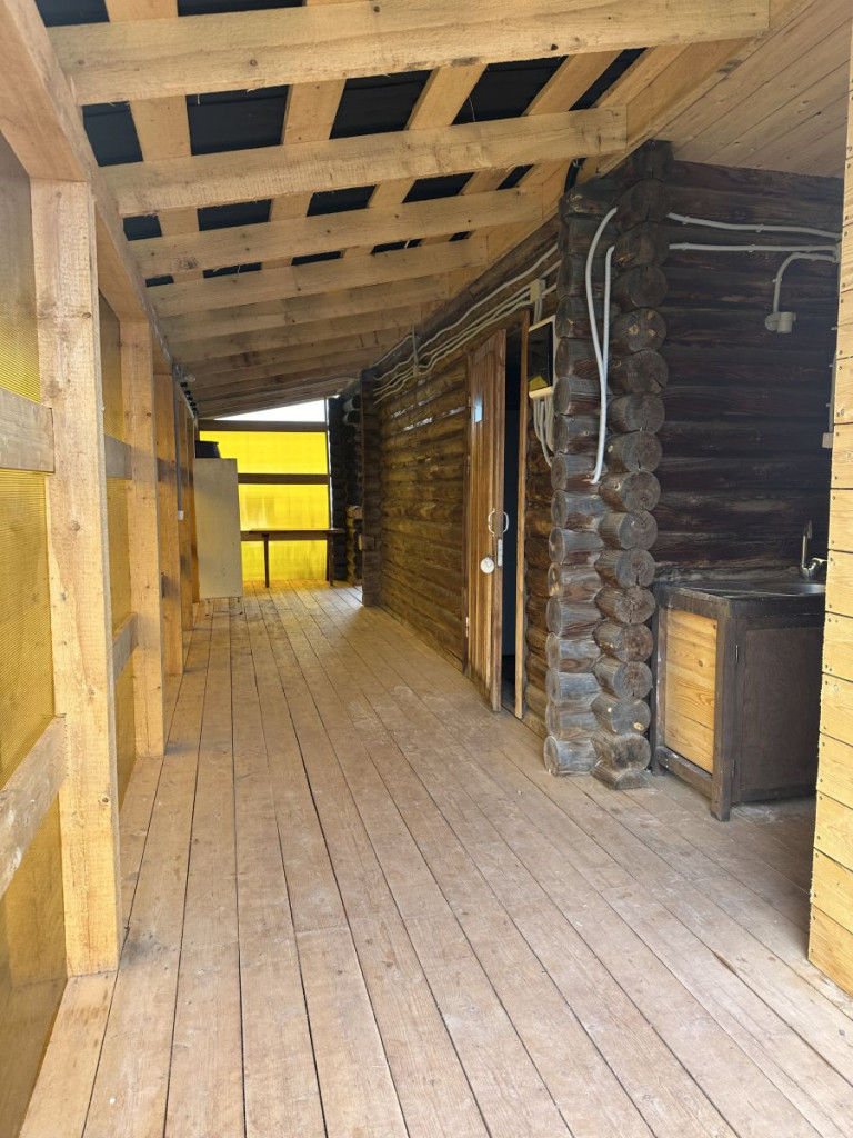 Общая площадь 120 кв.м., включая крытые веранды. Кухонная зона на крытой веранде: столы, лавочки, стулья, холодильник, чайник, а также кухонная раковина. В доме 4 жилые комнаты. В комнатах 6,8,3 и 5 спальных мест.