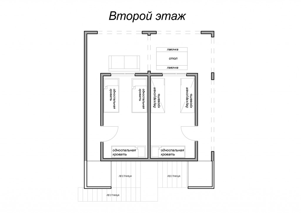 В 3 комнате на втором этаже 3 спальных места: 3 односпальные кровати. В 4 комнате на втором этаже 5 спальных мест: 2 двухъярусные и 1 односпальная кровати.
