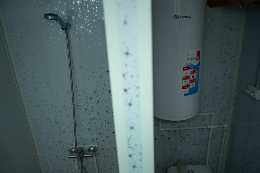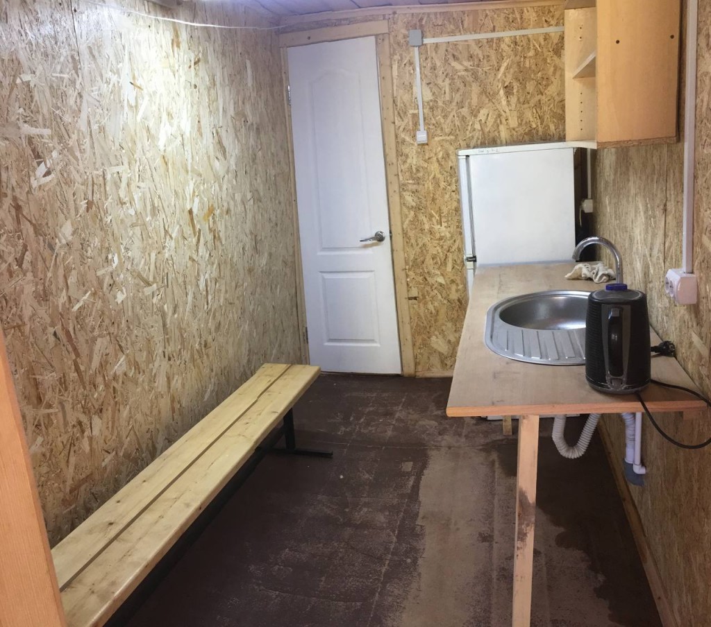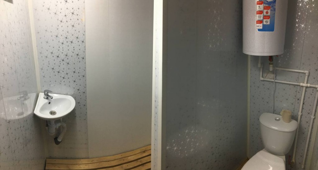 В домике - электричество, холодильник, чайник, собственный туалет и горячий душ. Рядом установлен мангал.