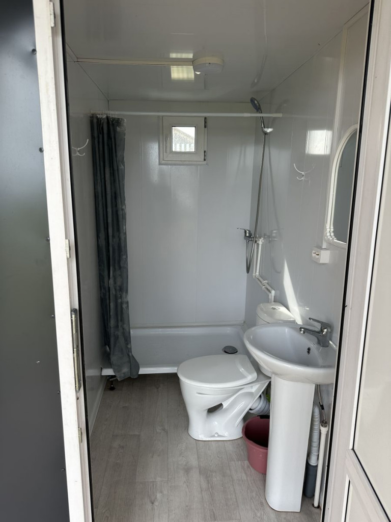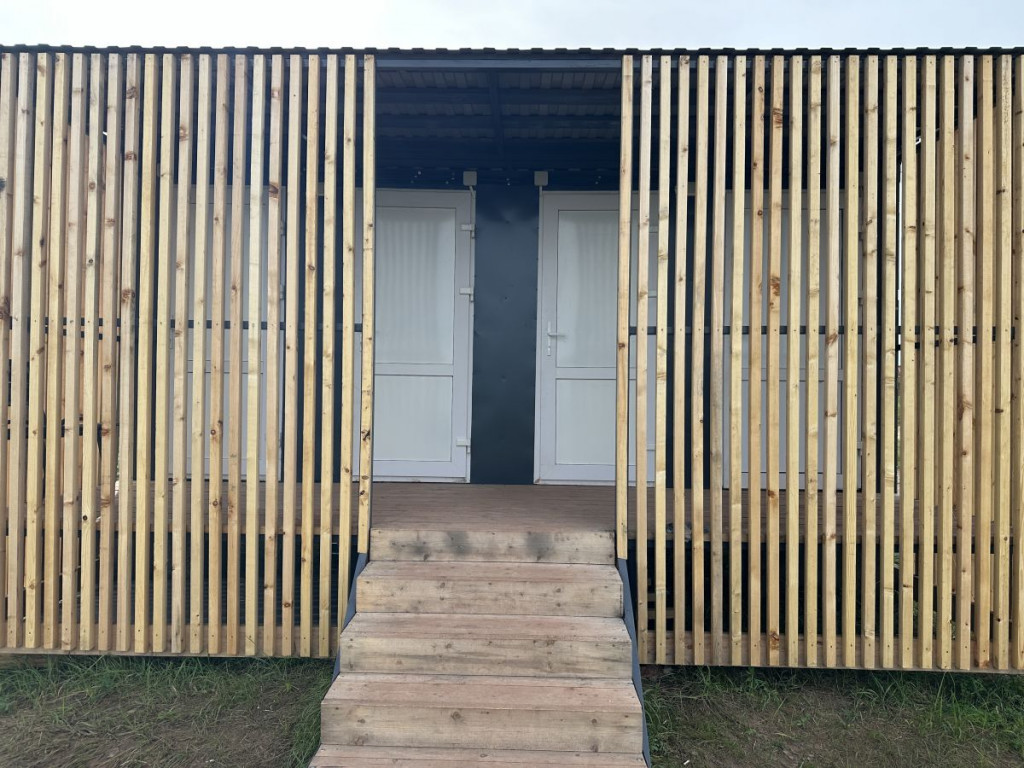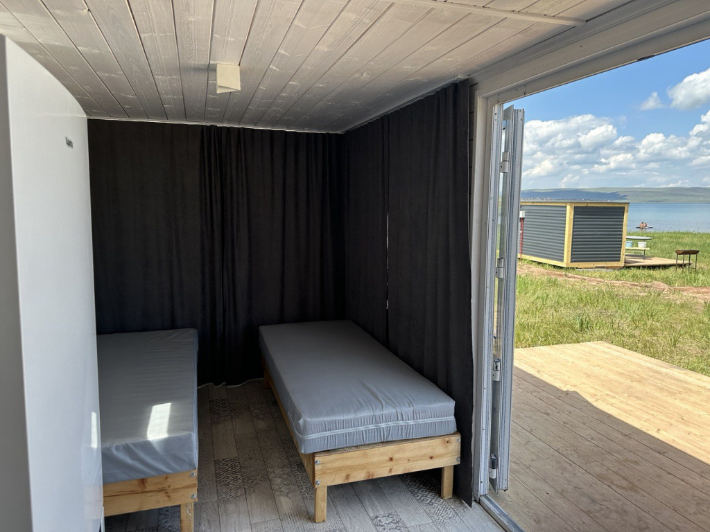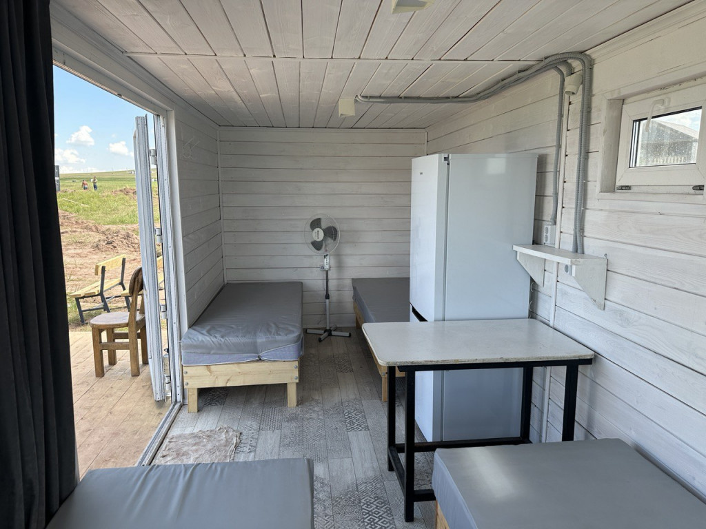 В домике - электричество, холодильник, чайник. Есть собственный туалет и горячий душ, расположенный на небольшом расстоянии от домика. Перед домиком смонтирована деревянная площадка и навес. Рядом установлен мангал.