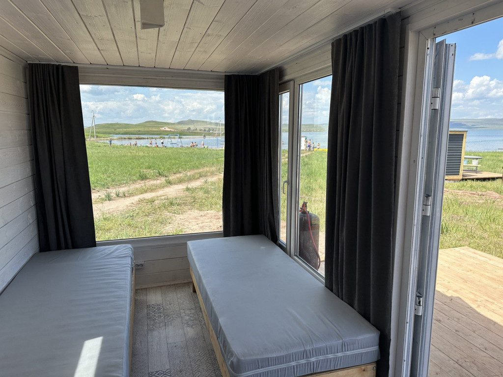 4 местный отдельно стоящий домик с видом на озеро, без общих стен с соседями, первая береговая линия, 70 м до озера.