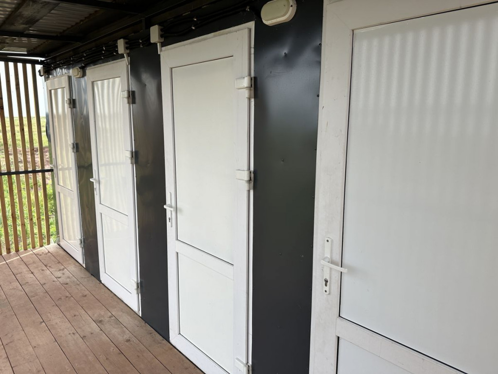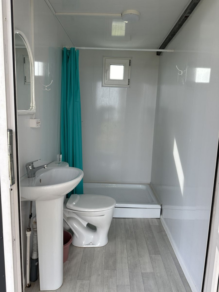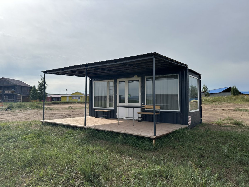 В домике - электричество, холодильник, чайник. Есть собственный туалет и горячий душ, расположенный на небольшом расстоянии от домика. Перед домиком смонтирована деревянная площадка и навес. Рядом установлен мангал.