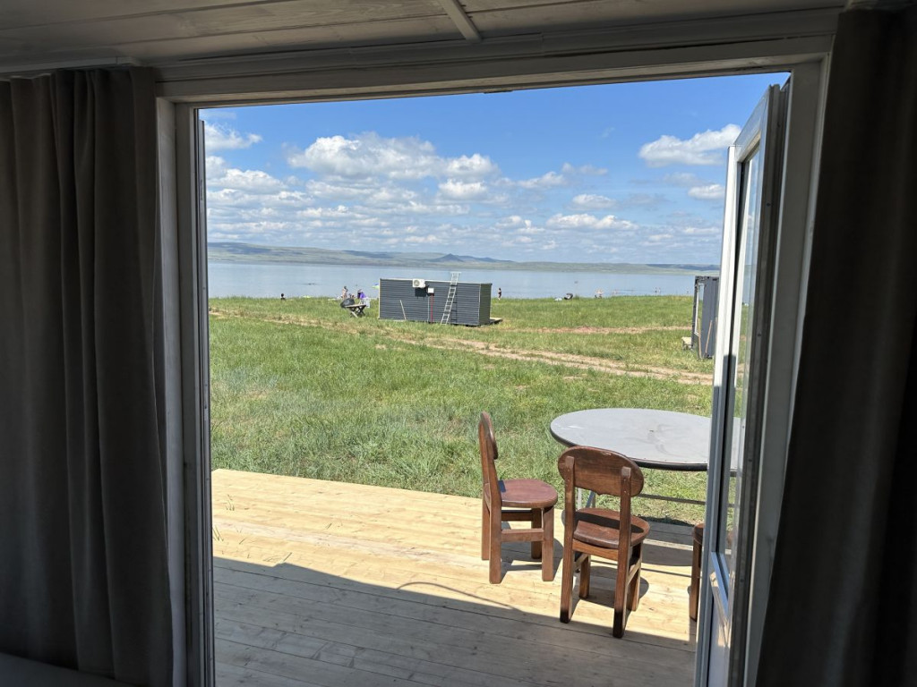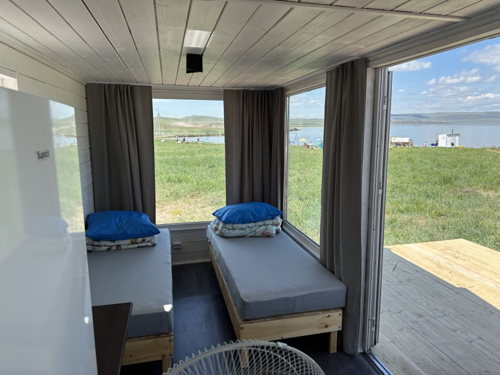 4 местный отдельно стоящий домик с видом на озеро, без общих стен с соседями, первая береговая линия, 70 м до озера.