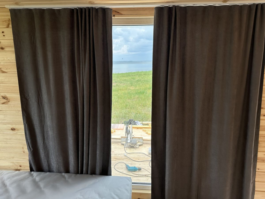 Высота потолка составляет 2м, домик уютный и компактный, на максимально близком расстоянии от озера.