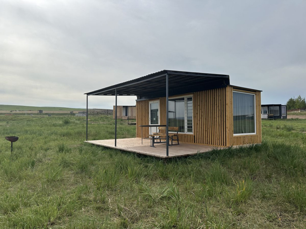В домике - электричество, кондиционер, холодильник, чайник. Есть собственный туалет и горячий душ, расположенный на небольшом расстоянии от домика. Перед домиком смонтирована деревянная площадка и навес. Рядом установлен мангал.