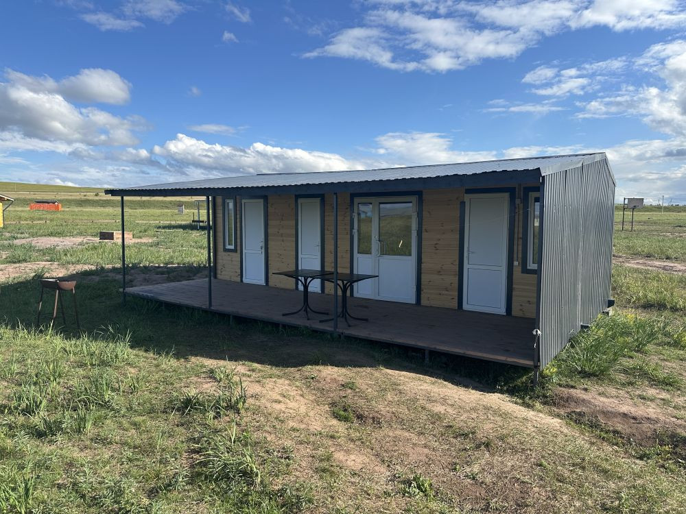 2 спальные комнаты общей площадью 14 кв.м. В каждой комнате 2 односпальные кровати и 1 двухъярусная кровать. Собственная кухня-веранда площадью 6 кв.м. Крытый навес перед домиком площадью 24 кв.м.